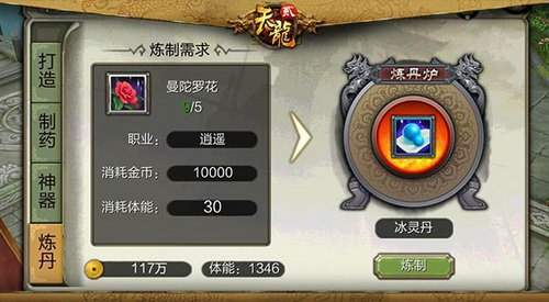 更高的战力、更完美的特点、更公平的交易准则。将会给各位玩家带来不一样的百炼成丹的体验!想要成为江湖人人求之的一流炼丹大师就速来和小编一同拜读炼丹终极攻略吧! 首先点击头像,炼丹体系在【制造】界面,炼制需耗费【曼陀罗花】、金币和体能,珍贵的曼陀罗花需经过少室山及护卫雁门关任务获取,完结日常任务添加活跃度,也能获取【曼陀罗花】。